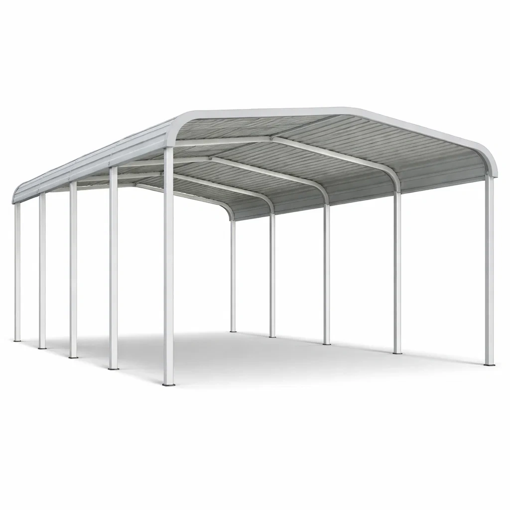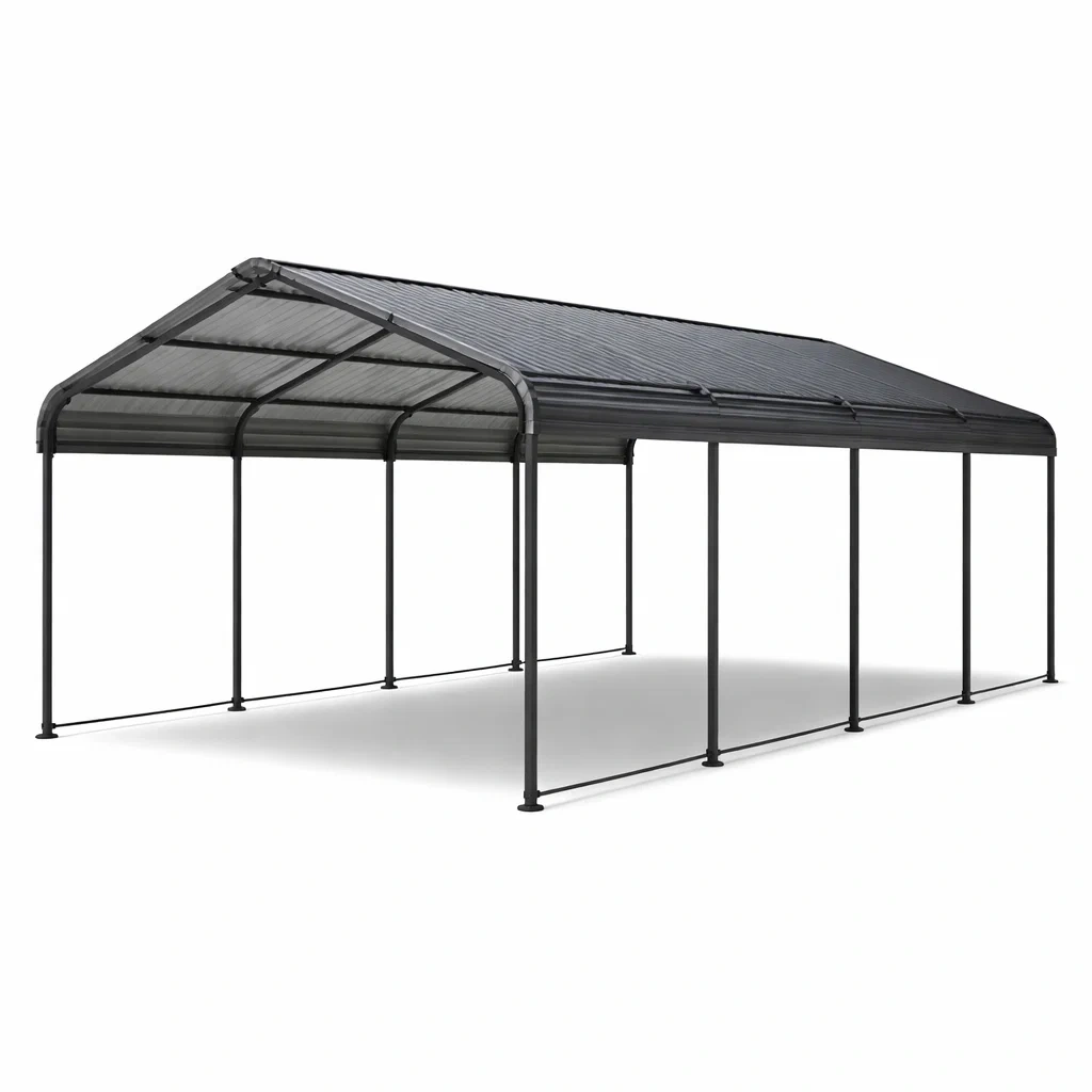 Abri de voiture en métal gris avec toit en acier galvanisé